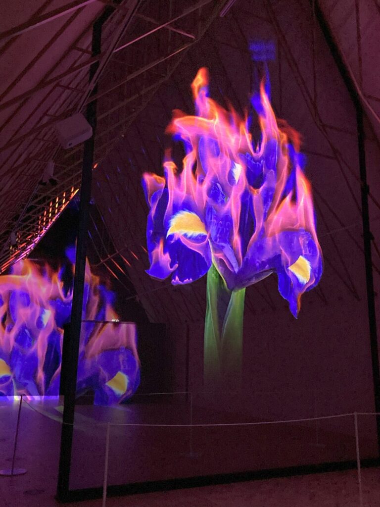 The Art & Architecture Group visited the Museum on Friday 1st March, soon after its initial opening. You are aware of something new in the Auckland Project once you enter the park from the market square and pass under the Robinson Arch. On your left is a most elegant stone building with little fenestration other than a single large rectangular window overlooking the walled gardens. This is the Faith Museum. Entering via the Palace we assembled in the Palace’s Old Library where Clare Baron, the Auckland Project’s Head Curator gave a concise history of the vision behind the creation of the museum: faith not religion. Then posed a series of questions which underpin all of the displays: why are we here, and with what intent? It was suggested that each of us would wish to use the visit in different ways: some would wish to hold on to the timeline while others would focus on specific exhibits. Then Claire mentioned certain items of specific local interest which she felt must not be missed. There are local artefacts arising from excavations within the Palace grounds and others found locally within the region e.g. the Binchester ring, the carved stone head, the small crucifix, made you reflect upon the lives of past residents in our locality. The lighting of the display at the end of the corridor of the cross which came from Lindisfarne took my breath away The Museum is on two floors and the upper floor contains galleries for temporary exhibitions, the second gallery currently contains an installation called ‘Eidolon’ by artist and photographer Matt Collishaw of an iris engulfed by flames and yet not consumed by them. This references the story in the book of Daniel when three Christian men refuse to worship a golden image of King Nebuchadnezzar and are thrown into a fiery furnace but, after the appearance of an angel, they pass through unharmed